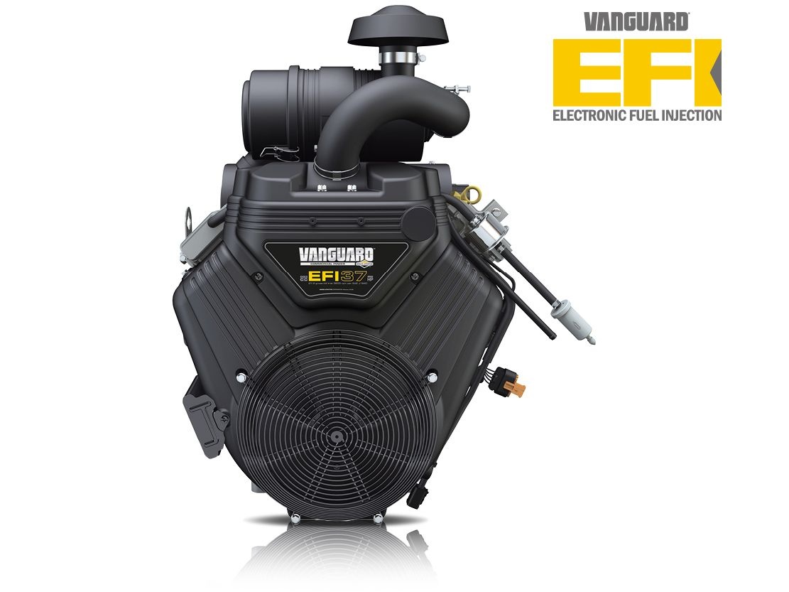 De B37-110 is uitgerust met de Vanguard EFI tweecilinder benzinemotor met de nieuwste ecologische technologie. EFI (elektronische brandstofinspuiting) past de brandstoftoevoer aan op de belasting van de motor. Hierdoor krijgt de machine meer koppel en betere prestaties onder belasting, behoudt hij een stabiel toerental, verbruikt hij tot 25 % minder brandstof afhankelijk van de werkcondities, verbrandt hij efficiënter met minder uitstoot, is er geen choke meer nodig, maakt de motor minder geluid en is er geen kans op een lekkende carburateur tijdens transport.