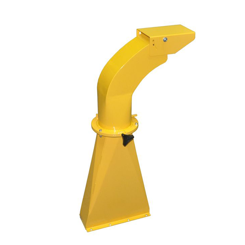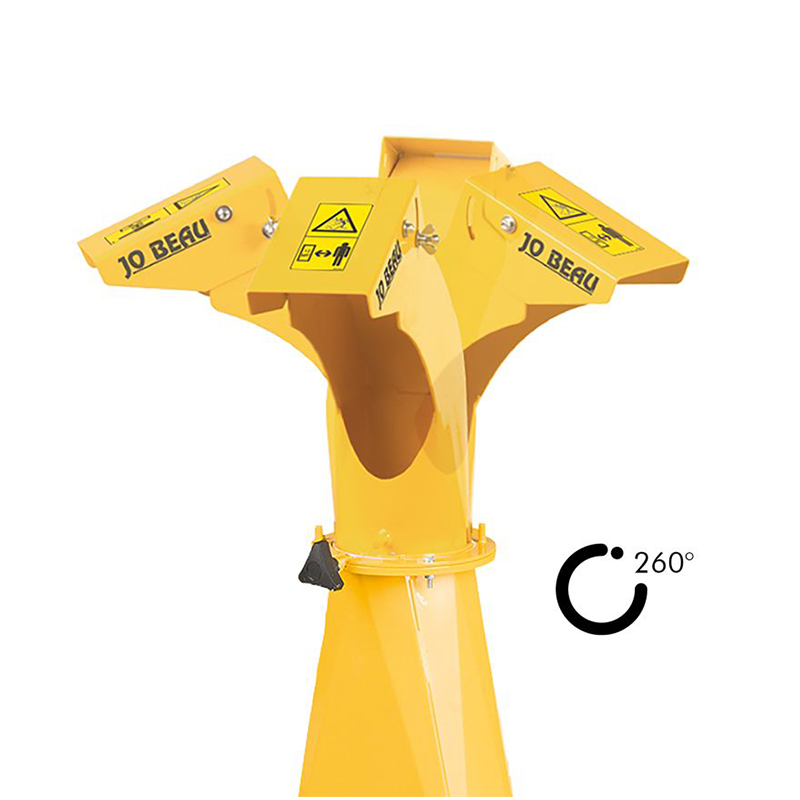 De draaibare uitwerp kan tot 260° worden gedraaid, zodat je de uitworp van houtsnippers nauwkeurig kunt richten (170° bij de T-, H- en R-modellen). Door de uitwerpkap te verstellen, kunnen houtsnippers tot 8 à 9 meter ver worden uitgeworpen. Wanneer het optionele afneemstuk onder de buis wordt gemonteerd, wordt de uitblaashoogte met 8 cm verhoogd, waardoor het totale uitblaasniveau ongeveer 2 meter bedraagt.