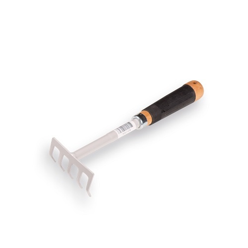 Handharkje 5 tands met houten greep. Geschikt voor het harken en losmaken van de grond in kleiner formaat. En ideaal voor kleine harkwerkzaamheden bijv. in tuinen, bloembakken en moestuinen.