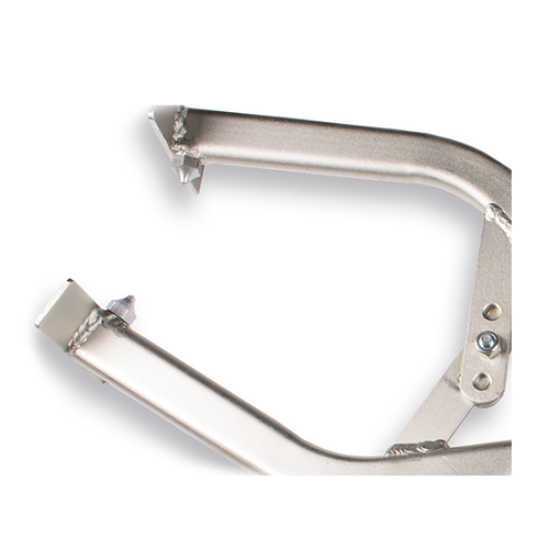 Bandentang met twee Eidia punten voor perfecte grip. De Labora trottoir bandentang is in verzinkte uitvoering, verstelbaar in drie standen en is gemaakt van een ovalen stalen buis. Wolfraamcarbide of Widia is een keramische stof, die ontstaat uit wolfraam en koolstof en is een mengkristal. De widia punten zijn zeer sterk en slijtvast. Let op: de Widia punten eerst verwijderen (losdraaien) als men aan het frame gaat lassen, deze springen anders ogenblikkelijk kapot. De Widia punten hebben een hardheid van 43 HRC en zijn zeer populaire geprijsd.