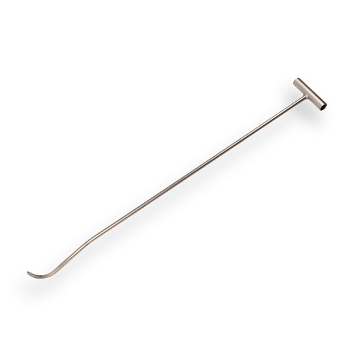 Moet je een putdeksel optillen? Dat kan eenvoudig met deze putdekselhaak. Je haakt de punt onder een de putdeksel en licht zo heel gemakkelijk de putdeksel op. Putdekselhaak LABORA 100 cm verzinkt met gesmede krul