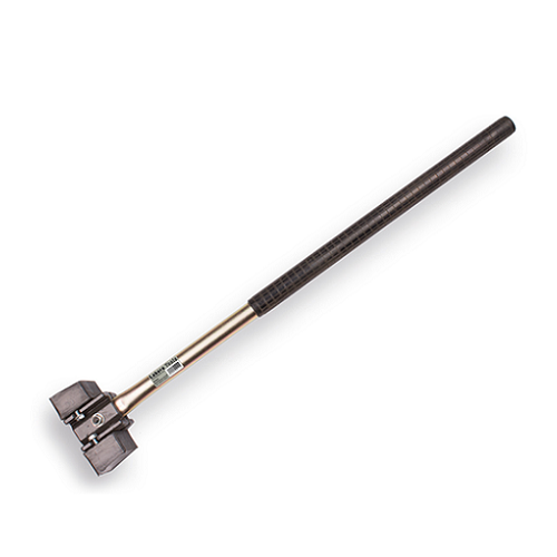 Richthamer met afgeschuinde rubbers. Voorzien van metalen steel en rubberen handvat. Handig voor het richten van bestrating.