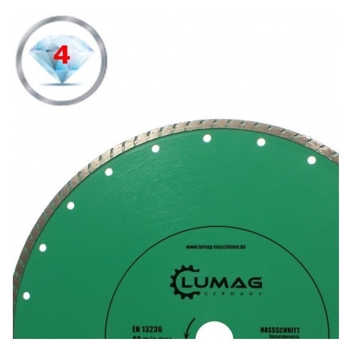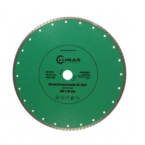 Het Lumag universele turbo diamantzaagblad is ontwikkeld voor het natzagen met een mooie zaagsnede van allerlei bouwmaterialen. Geschikt voor het zagen stenen, beton, natuursteen, tegels, dakpannen en andere bouwmaterialen waarbij een strakke zaagsnede gewenst is. Het zaagblad heeft een diameter van 350 x 30 mm, een segment hoogte van 10 mm en een segment type Turbo. (beter als standaard universeel zaagbladen)