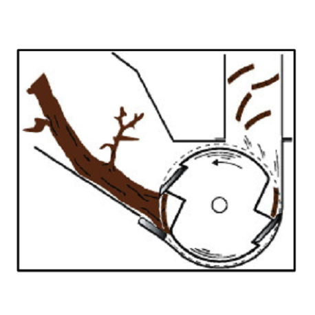 De Lumag HC10-NL is voorzien van een mestrommel. Deze mestrommel heeft 2 messen, die continue voorbij een contrames draaien. Dit zorgt ervoor dat het te verhakselen materiaal in de hakselaar wordt getrokken. De hakselaar kan gebruikt worden voor snoeiafval van struiken tot bomen.