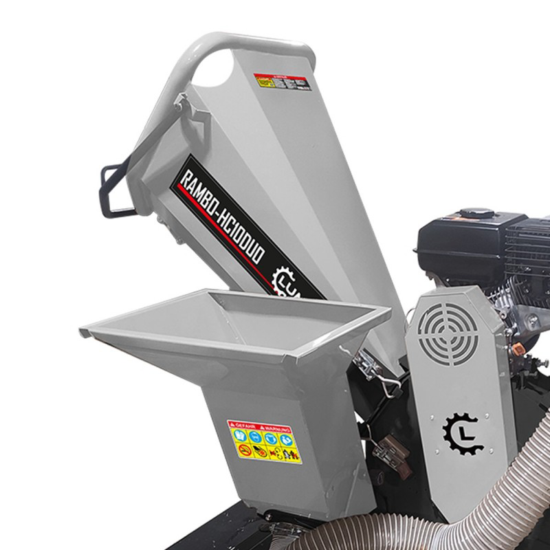 De Lumag HC10DUO-NL is een krachtige, compacte hakselaar met een 7,0 pk benzinemotor en een duplex mestrommel met dubbele invoertrechter en zuigslang. De trommel, uitgerust met twee messen, verwerkt takken tot 100 mm en snoeiafval efficiënt. De in- en uitworptrechter zijn scharnierbaar, wat de reiniging eenvoudig maakt.