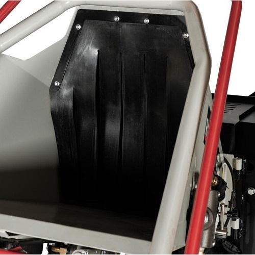 De zeer robuuste inworpschacht is scharnierbaar gemaakt waardoor je bij verstoppingen, schoonmaken of vervanging van de messen eenvoudig de invoerschacht naar een zijde kunt laten zakken.