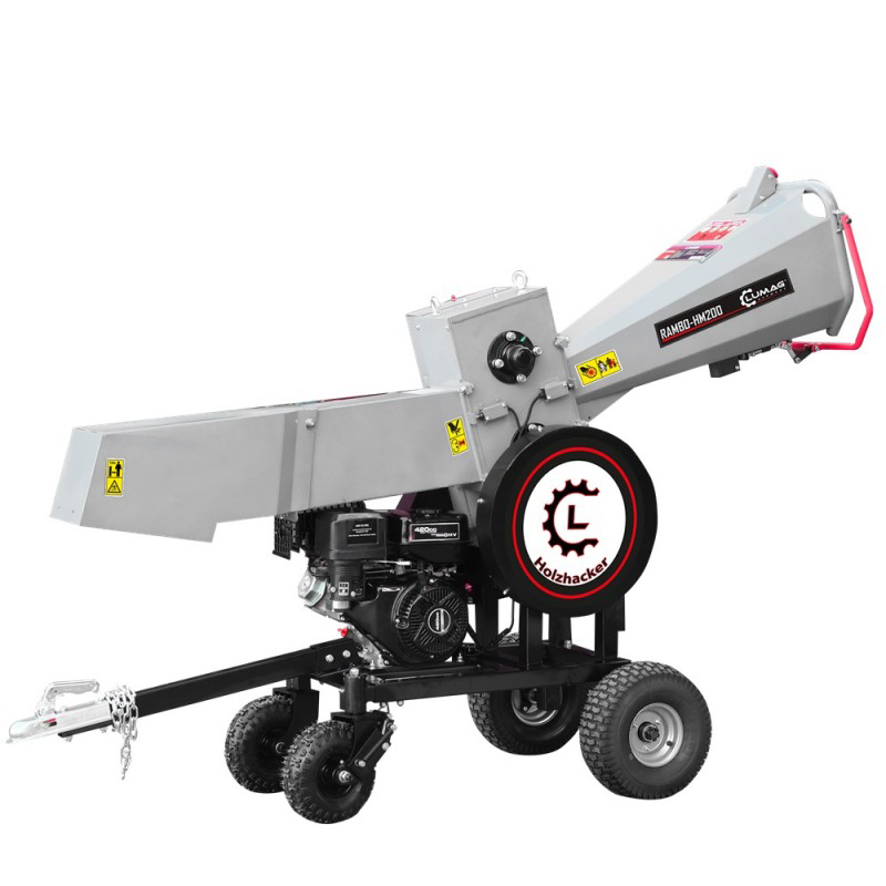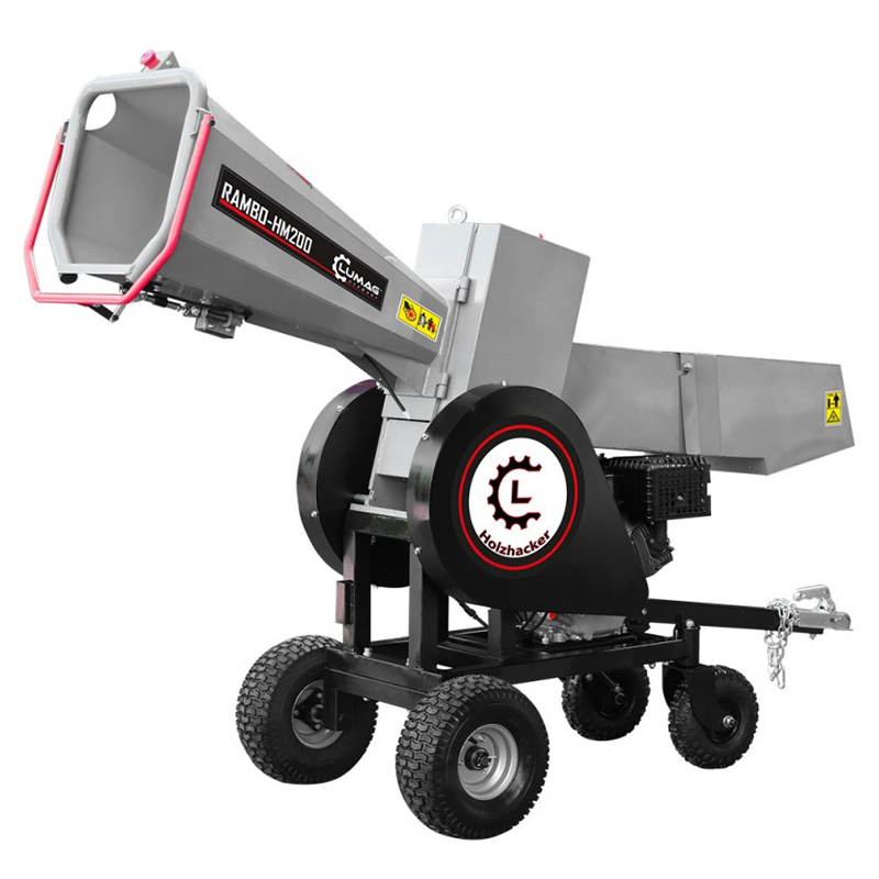De Lumag HM200 is een zeer krachtige haardhouthakselaar met een 13 pk benzinemotor en twee mestrommels. Deze hakselaar verwerkt hout tot brandhout, perfect geschikt voor verbranding in alle soorten kachels en centrale verwarmingsovens. Je voert de takken in de machine, die deze vervolgens hakt/snijdt tot stukken die als brandhout/haardhout verkocht kunnen worden. De maximale diameter van de takken is Ø 120 mm, en de lengte van de takken is 25 cm. De hakselaar kan tot 400 houtstukken per minuut verwerken.