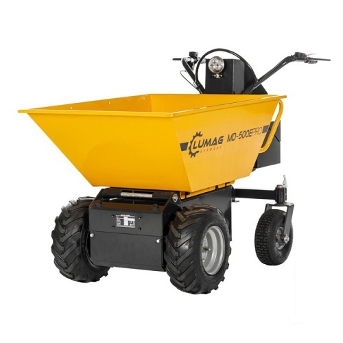Deze Lumag MD500EPRO accu kruiwagen met kiepbak is uniek doordat deze is voorzien van een 48 V accu. De machine is zeer geschikt voor het transport van vele materialen tot een gewicht van 500 kg over diverse ondergronden. Door het gebruik van banden in plaats van rupsen wordt de ondergrond minder belast en is de machine zeer wendbaar ook op harde en zachtere ondergronden.