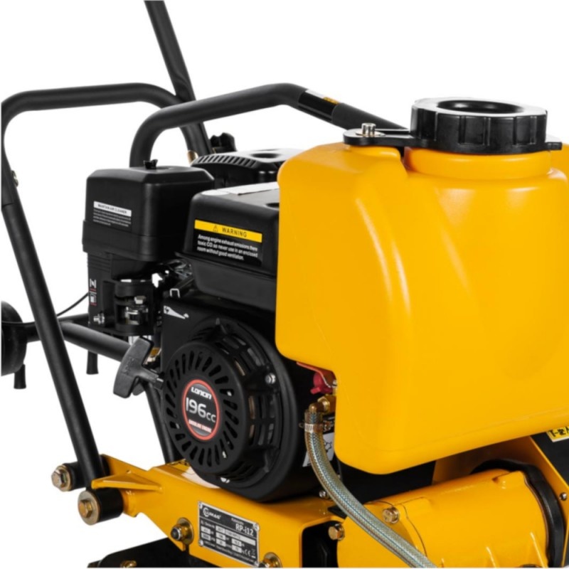 De RPi12 wordt geleverd met een transparante PU-ondermat ter bescherming van het straatwerk, een eenvoudige "Kick-back" transportwielenset, en een 10-liter watertank. De motor is geschikt voor euro loodvrije benzine, maar wij adviseren Aspen 4 alkylaatbenzine, vooral als de machine niet regelmatig wordt gebruikt.