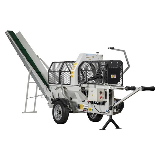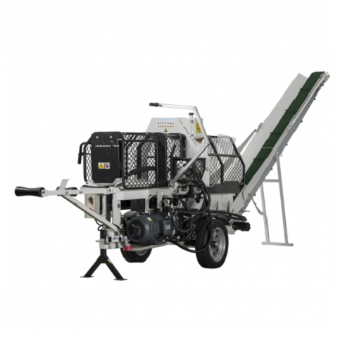 Je kan stammen tot 38 cm doorsnede aanvoeren. Met een hydraulisch aangedreven kettingzaag (zaagblad lengte 500 mm) zaag je de stam op de gewenste lengte, het hout valt daarna voor de kloofinrichting die met een hydraulische kloofkracht van 10 ton wordt het hout zal kloven. Daarna komt het hout op een 3,2 meter lange transportband die het naar een door u gewenste plaats transporteert (u maakt een berg met gekloofd hout of laat het hout direct in transport zakken of aanhanger vallen). De maximale uitworp hoogte is 2 meter. Het kloven en zagen kan door het gebruik van twee hydraulische pompen gelijktijdig plaatsvinden.
