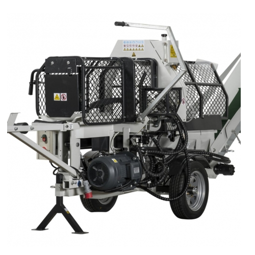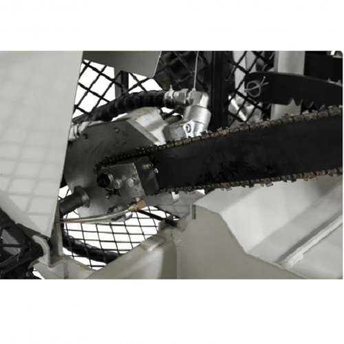 Je kunt stammen tot 38cm doorsnede aanvoeren. Met een hydraulisch aangedreven kettingzaag (zaagblad lengte 500 mm) zaag je de stam op de gewenste lengte, het hout valt daarna voor de kloofinrichting die met een hydraulische kloofkracht van 10 ton gesplitst wordt.