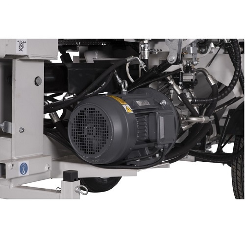 De houtklover is voorzien van een krachtige 9500 W, 18,4 A elektromotor (Netspanning 400V/ 50Hz, zekering 20A, min. kabel dikte 2,5mm²). Het voordeel van een elektromotor is natuurlijk geen motorgeluiden of uitlaatgassen, dus milieu vriendelijk werken. je kan met deze machine erg veilig hout kloven maar uiteraard is je kloofopbrengst veel hoger dan als je beide bewerkingen (kloven en zagen) separaat moet uitvoeren.
