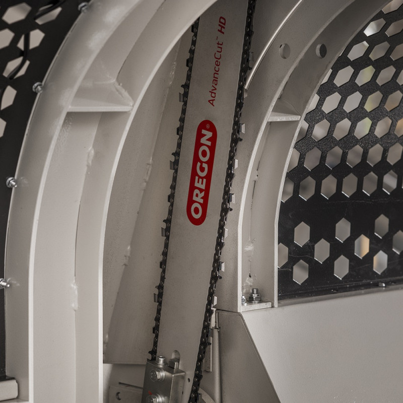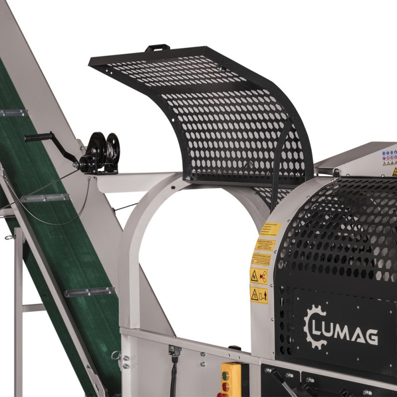 Het nieuwste topmodel uit de Lumag range combineert zagen, kloven en transporteren van hout in één krachtige machine. Hout tot 50 cm doorsnede wordt via de hydraulische aanvoerband naar de zaag gebracht en automatisch vastgezet door mechanische platen, zodat het veilig en precies op de gewenste lengte gezaagd kan worden met de 13,6 pk benzinemotor. Daarna klooft het hydraulisch verstelbare splijtkruis het hout in 2, 4 of 8 delen (optioneel ook 6- of 8-delig). Het hout wordt vervolgens via een 3,2 meter lange transportband afgevoerd naar de gewenste locatie, met een maximale uitworphoogte van 2 meter.