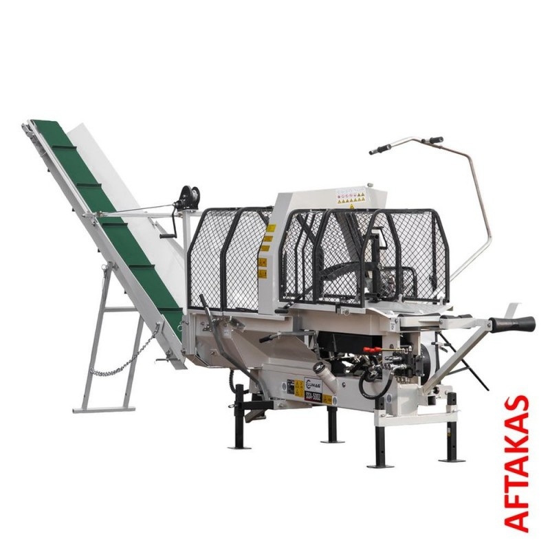 Deze unieke professionele zaag- en kloofmachine SSA500Z van Lumag combineert drie machines in één. De machine zaagt uw hout op de gewenste lengte en klooft daarna het gezaagde stuk hout in 2 of 4 delen (als optie ook 6 delig splijtkruis leverbaar). De machine heeft een aanvoertransportband (hout aanvoer tot aan de zaag) en afvoer transportband (na het kloven). De zaag-kloofmachine is voorzien van een aftakas aandrijving.