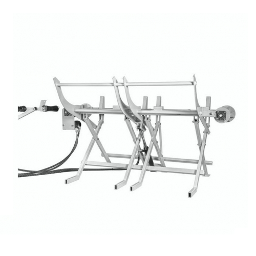De 5SSA400SH is een hydraulisch aangedreven heftafel voor de Lumag zaagkloofmachines SSA400G, SSA400Z, SSA400E, SSA400GOF, SSA400ZOF, SSA400EOF en alle SSA500 zaagmachines. Met deze heftafel breng je het hout op hoogte van de aanvoer-transportrollenbaan of de hydraulische aanvoerband. De gekartelde rollen zorgen voor aanvoer richting de standaard op de machine aanwezige transportrollen of naar de extra geleverde hydraulische aanvoerband.