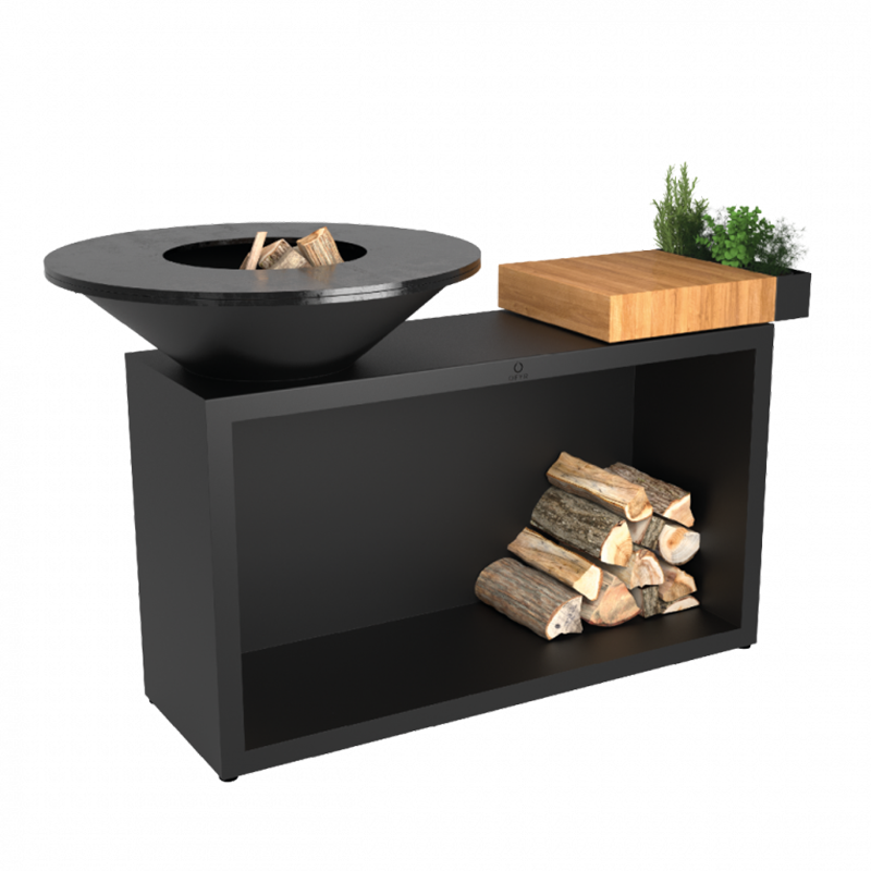 De OFYR Island+ Black 85 - Teak Hout is een elegante alles-in-één buitenkeuken die functionaliteit en esthetiek perfect combineert in een compact ontwerp. Dit model bestaat uit een OFYR kooktoestel met geïntegreerde houtopslag, een stevig werkblad van teakhout, en een handige tooltray voor keukengerei en kruiden. Het werkblad is een schitterend element in het ontwerp en voegt een luxe uitstraling toe aan elke buitenruimte.