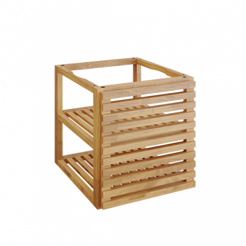 De insert kan eenvoudig rechtstreeks in de opslagruimte worden gemonteerd. Als alternatief kan deze vooraf worden samengesteld en vervolgens ingeschoven, al kan dit bij zwarte, gecoate toestellen tot krassen leiden. Het hoogwaardige teakhout is geolied bij levering en vereist periodiek onderhoud met olie om de kwaliteit en levensduur te waarborgen.