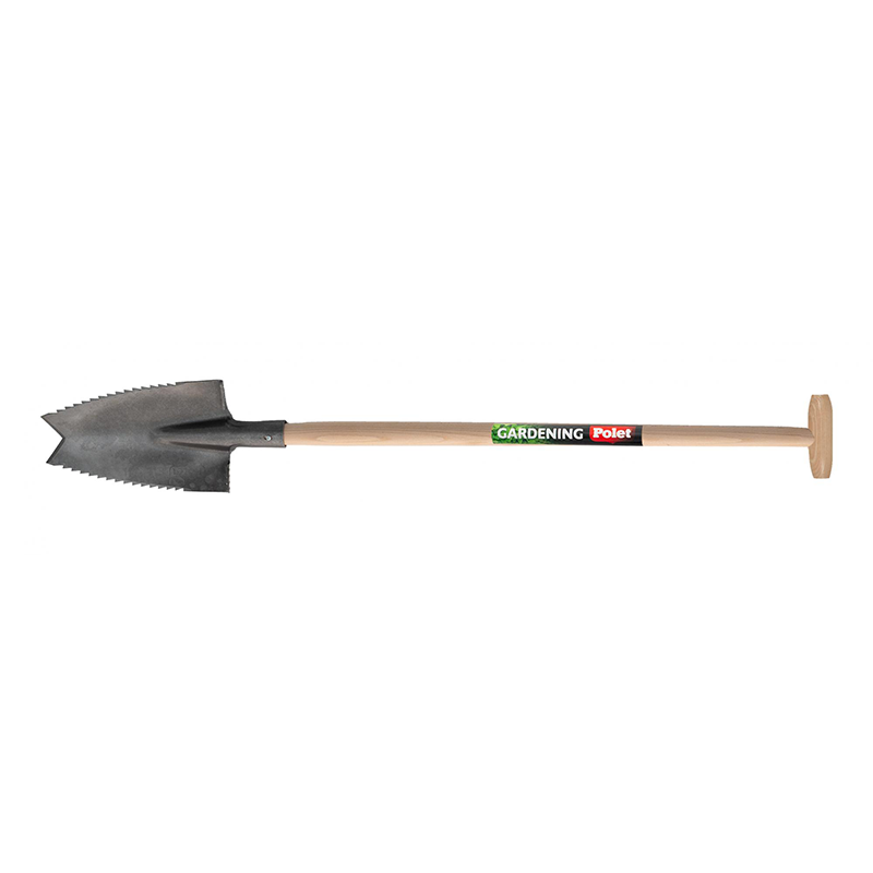 De spade is uitgerust met een stevige beukenhouten T-steel van 85 cm lang (code: 136290CB), die comfortabel in de hand ligt en optimale controle biedt tijdens het werken. Het blad is bovendien afgewerkt met een extra hardingsproces voor een langere levensduur en maximale slagvastheid.