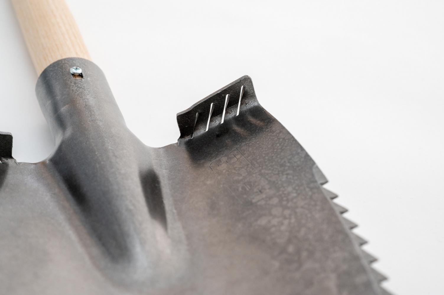 Deze veelzijdige tuinspade is een onmisbare tool voor elke tuinliefhebber. Het blad, gemaakt van extra gehard staal, is voorzien van praktische voetsteunen die zorgen voor meer kracht en comfort tijdens het werken. Dankzij de fijn geslepen snede en scherpe tanden aan beide zijden is de spade niet alleen geschikt voor het klassieke spit- en graafwerk, maar ook voor zwaardere taken zoals het ontwortelen van planten, het zagen van wortels en het splitsen van stevige struiken.