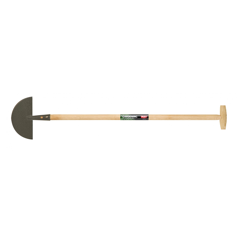 De Polet Graskantsteker T-steel, 90 cm met houten steel is het ideale gereedschap voor het strak afsteken van graskanten. Het halfronde blad is vervaardigd uit hoogwaardig staal en voorzien van een aangescherpte ronde snede, wat zorgt voor precieze en efficiënte sneden. Met een stevige houten steel van 90 cm biedt deze graskantsteker zowel duurzaamheid als comfort tijdens het gebruik.