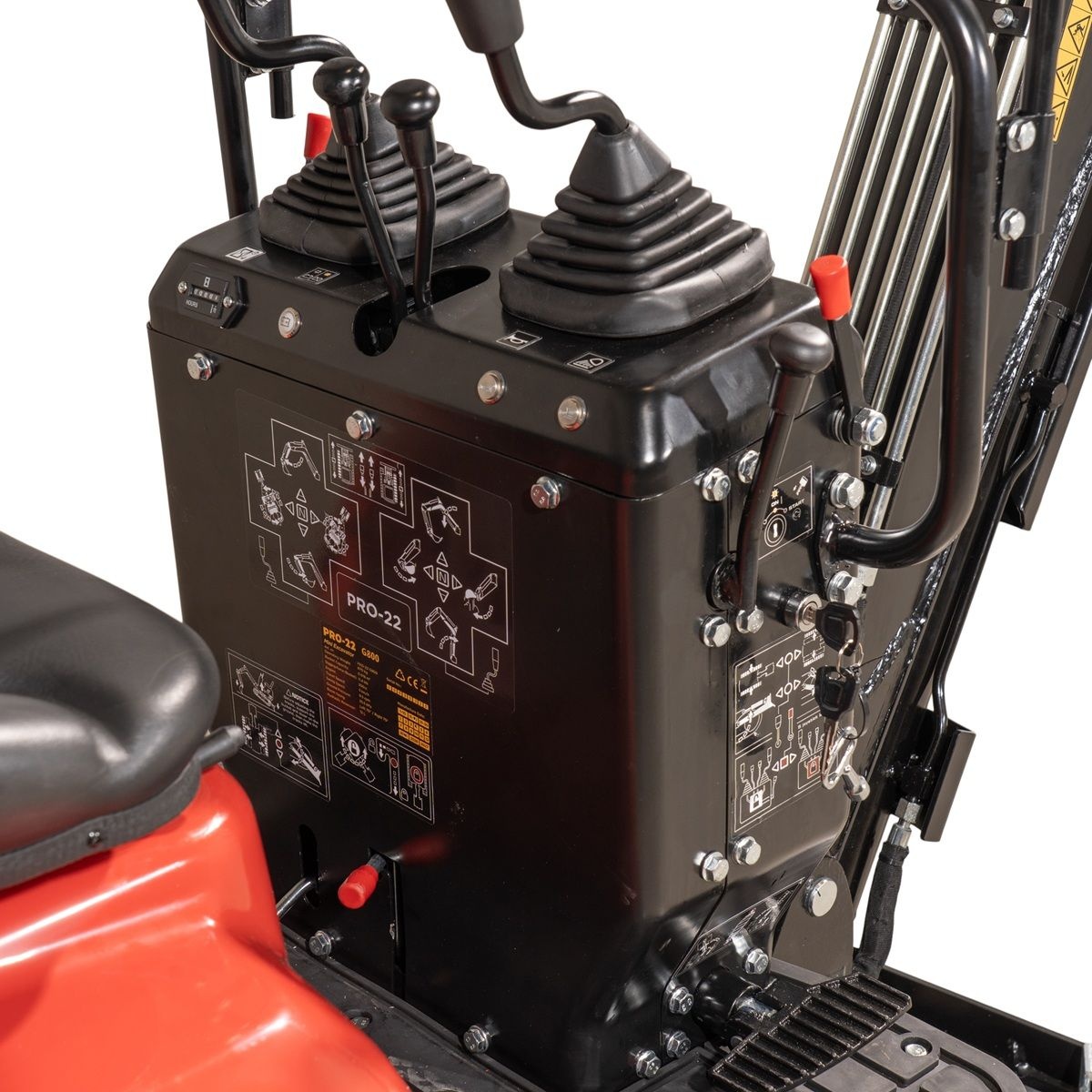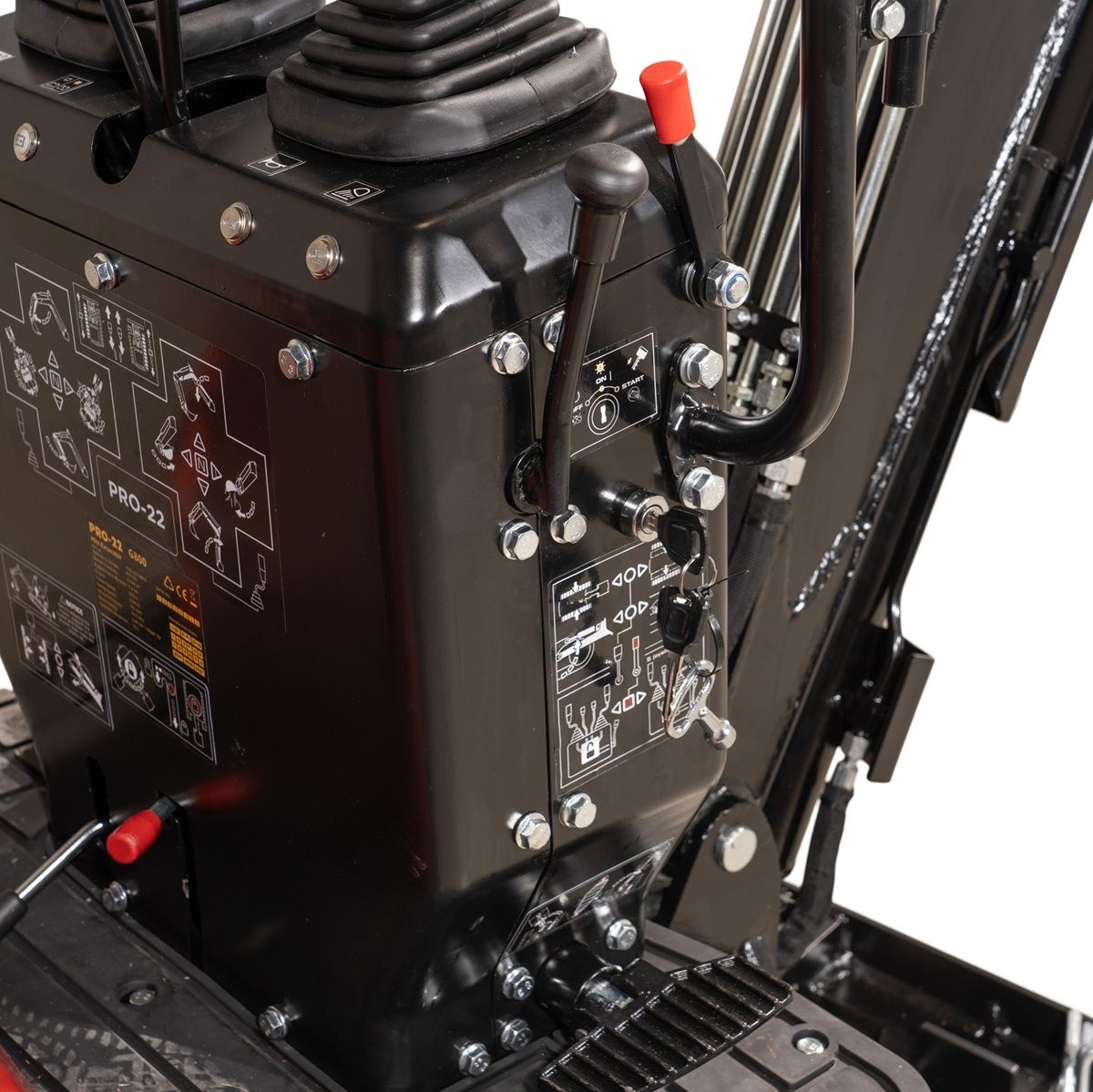 De PRO-22 G800 blinkt uit in kwaliteit dankzij zijn hoogwaardige en robuuste afwerking. Deze minigraver is standaard uitgerust met een krachtige hydraulische pompunit en een hydraulisch bedienbare grondschaaf voor maximale prestaties. Starten gaat eenvoudig via de elektrische startsleutel – geen gedoe, direct aan de slag.