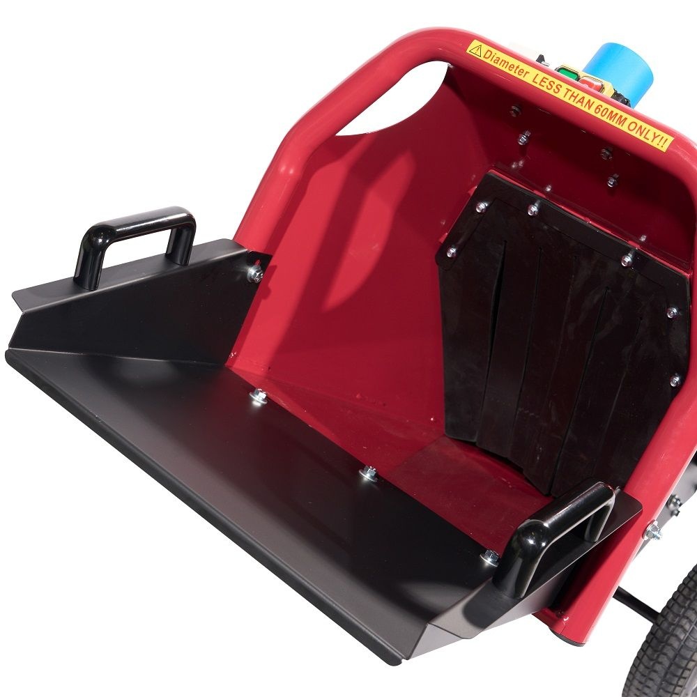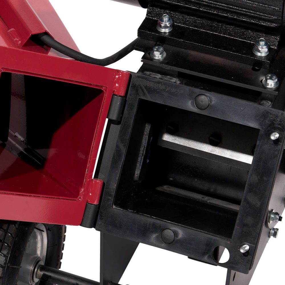 De invoertrechter is scharnierbaar, waardoor de trommel zeer makkelijk bereikbaar is. Zou de trommel verstopt raken of gereinigd moeten worden, dan is deze simpel te bereiken. De houtsnippers worden door de afvoerbuis hoog uit de machine geworpen. Met de richtplaat bepaalt u de uitworpstand. Zo is het mogelijk eenvoudig de snippers in een zak of kruiwagen te laten werpen of tussen de struiken. De hakselaar kan takken, struiken, hagen etc. perfect verhakselen. Het verhakselde materiaal is ideaal om te gebruiken als compost, bodemafdekking tegen onkruid en droogte, tuinpaden, etc.