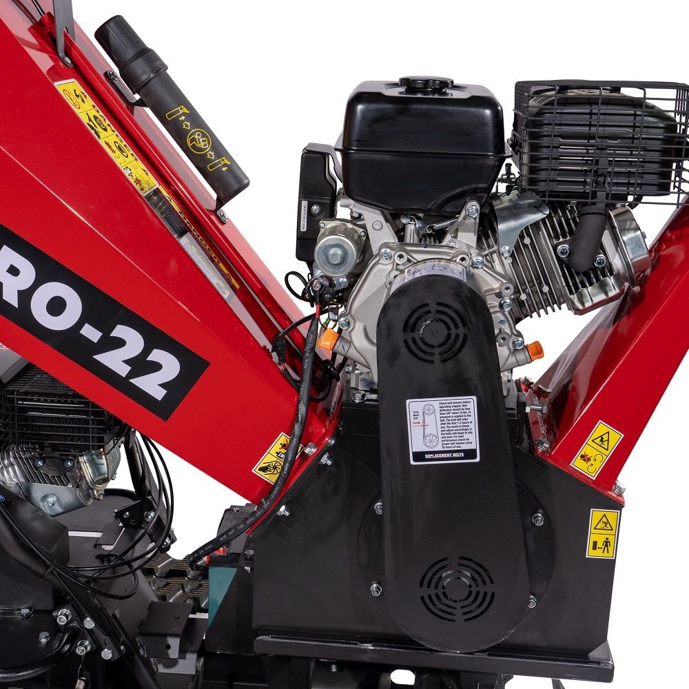 De hakselaar is voorzien van een krachtige RATO, 15 pk, 420cm³ benzine motor en een duplex mestrommel. De trommel wordt aangedreven door 2 kevlar aandrijfriemen. Deze combinatie zorgt ervoor dat takken tot maximaal 125 mm verhakseld kunnen worden. In continue gebruik verwerkt de PRO-22 S7R takken van 80-100 mm met gemak.