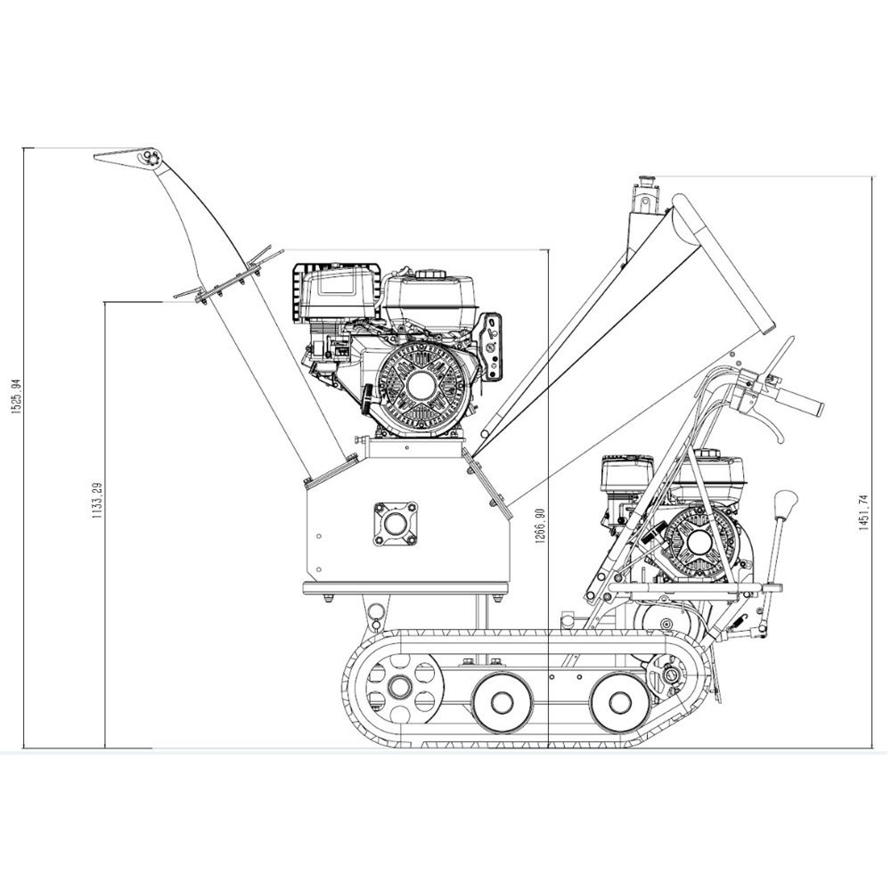 De hakselaar beschikt over een grote uitworptrechter die de houtsnippers effectief afvoert, wat de werkomgeving schoon en opgeruimd houdt. De machine wordt aangedreven door een krachtige LONCIN 15 pk, 420 cm³ 4-takt OHV benzinemotor voor het hakselen, en een LONCIN 6,5 pk, 196 cm³ 4-takt OHV benzinemotor voor het rups onderstel, zodat je altijd voldoende kracht hebt om door te werken.