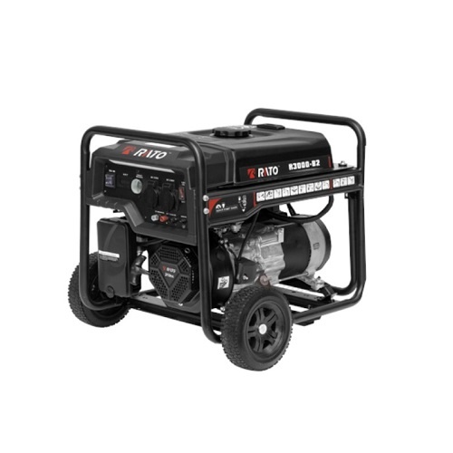 De RATO R3000-B2 is een krachtige en compacte RATO benzine generator-aggregaat van professionele kwaliteit. De professionele 3000 Watt benzine aggregaat levert uitstekende prestaties op zowel 230 Volt. Het continue vermogen ligt op 3000 Watt. De generator heeft een 100% koperwikkeling en is voorzien van een elektronische beveiliging. Het aggregaat heeft een overbelasting beveiliging en de motor kan eenvoudig met de hand worden gestart. De aggregaat is voorzien van AVR beveiliging, AVR staat voor een automatische volt regeling. Dit betekent een continue spanning terwijl een overbelasting beveiliging voor de noodzakelijke zekerheid zorgt. Dit beschermt dus je aangesloten elektrische machines voor piek spanningen. De aggregaat is voorzien van een LCD display met voltmeter en brandstofmeter. De 14,5 liter tankinhoud betekent dat je de generator lange tijd achter elkaar kan gebruiken, (8 uur op vol vermogen en 12 uur bij halve belasting).