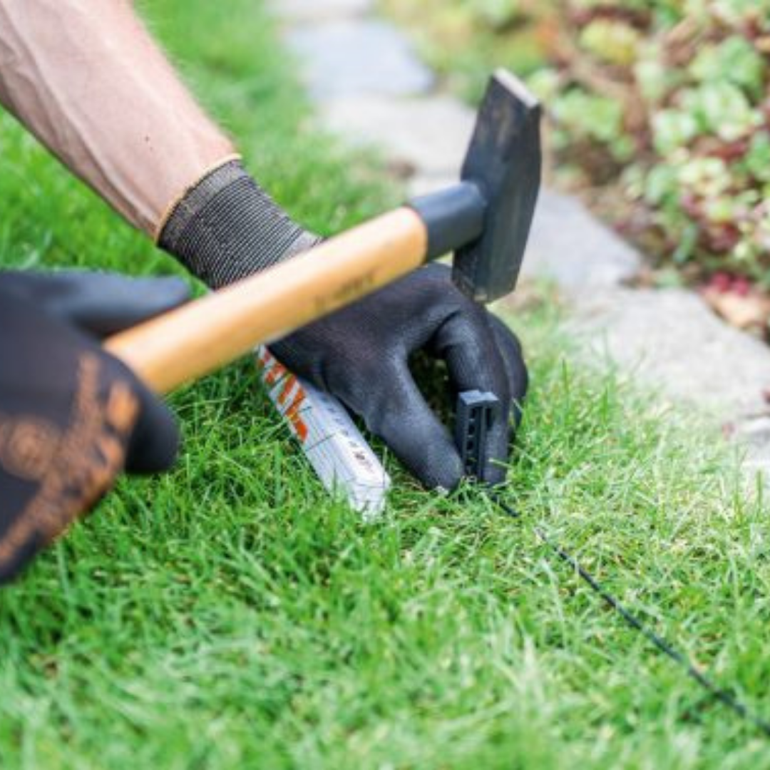 - Begrenzingsdraad (voor oppervlakten tot 5.000 m²) wordt ingefreesd met een machine