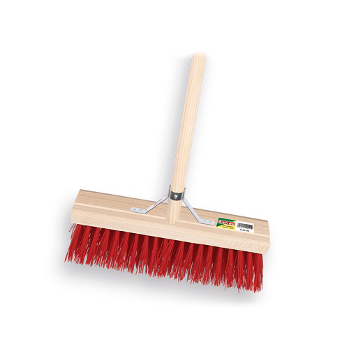 SOLIDE Straatbezem 35 / 41 cm met rode PPN vezels. compleet met IKAPE steel 150 x 2,8 cm en stokhouder. PPN vezel is een slijtvaste synthetische vezel met een dikte van 1,0mm. Het voordeel van PPN vezels is dat deze minder vuil vasthouden.