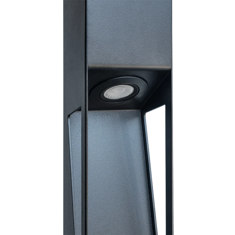 De matzwarte afwerking geeft de lamp een eigentijdse look die perfect past bij een moderne tuin of strak vormgegeven buitenruimte. Ook bij slecht weer blijft de lamp stevig op zijn plek staan — of het nu regent, waait of sneeuwt.