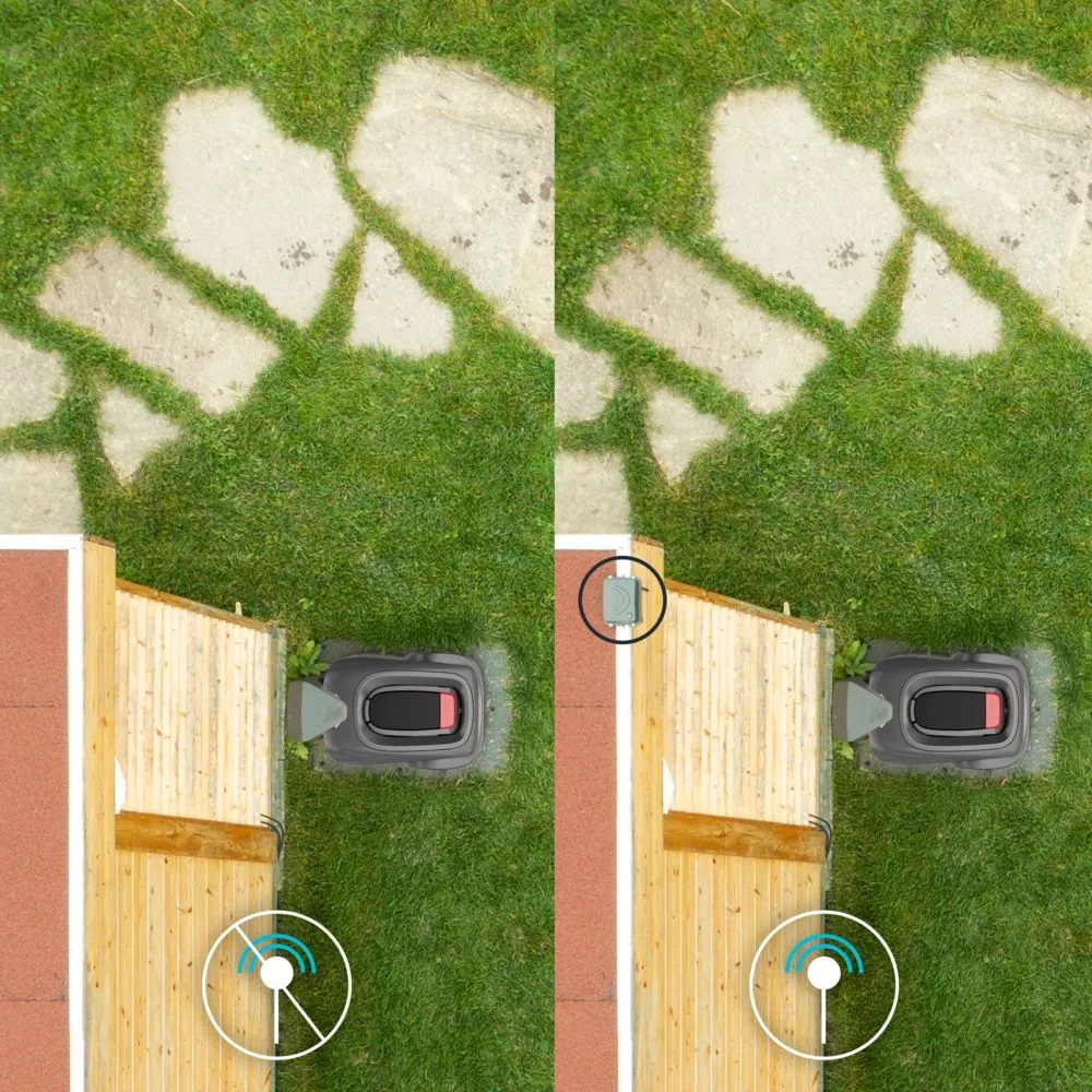 Dankzij de geavanceerde AGS- en GPS RTK-technologie plant de robotmaaier het maaien op intelligente wijze, op basis van de sterkte van het satellietsignaal. Dit garandeert een volledige en efficiënte dekking van het gazon.