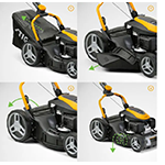 Voor de perfecte afwerking in in alle seizoenen stel je de maaihoogte in op een van de vijf verschillende standen met de centrale hendel.