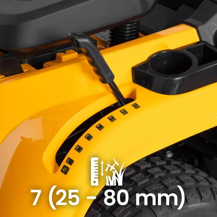 Pas de maaihoogte eenvoudig aan in een van de 7 standen tussen 25 en 80 mm met een praktische hendel.