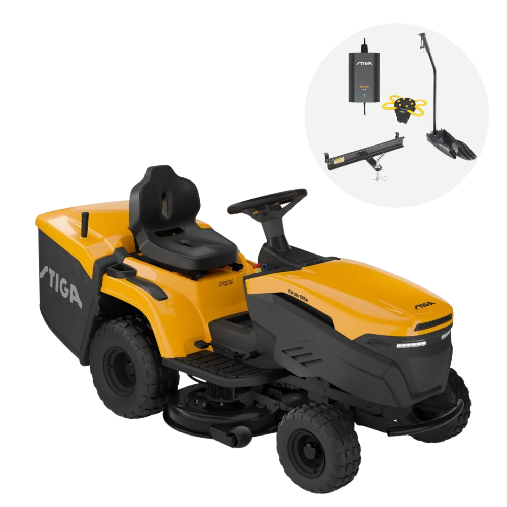 De STIGA Estate 384e accu zitmaaier wordt geleverd met een 5A-batterijlader, mulchplug, trekhaak en telefoonhouder. Opladen kan zowel aan boord als los, en het onderhoud is minimaal, waardoor de machine altijd klaar is voor gebruik. ePower Pro-batterijen zijn niet inbegrepen.