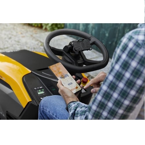 Bespaar energie en geld dankzij programmeerbare oplaadsessies. Plan de onderhoudstaken in, neem contact op met je STIGA-dealer, Kijk hoe lang je hebt gemaaid. De STIGA app maakt van je telefoon een virtueel dashboard voor eenvoudige bediening van je Estate 584e accu zitmaaier.