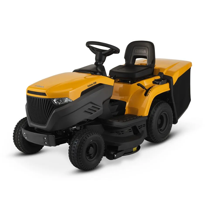 De STIGA Estate 598 benzine zitmaaier is uitgerust met een krachtige 452 cc ST 500 STIGA-motor en heeft een maaibreedte van 98 cm. Het maaidek van de Estate 598 is voorzien van twee messen die samen zorgen voor een onberispelijk maairesultaat, waarbij geen grassprietje wordt overgeslagen. Vang het maaisel op in de ruime opvangbak van 240 liter, verspreid het op het gazon met een optionele deflector aan de achterkant, of mulch het en verdeel het in het gras waar het verteert en dient als gratis natuurlijke bemesting.
