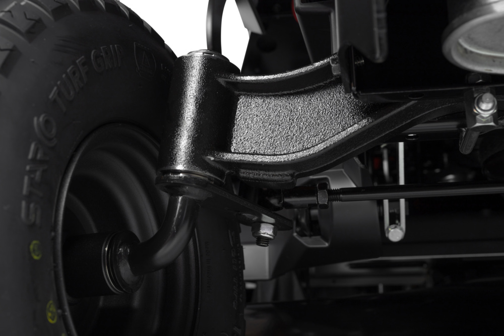 De maaier biedt optimaal rijcomfort met een STIGA premium stuurwiel met soft grip en een STIGA Comfort Plus-zitting, die verstelbaar is met een enkele hendel. De hydrostatische transmissie, bediend met een voetpedaal, zorgt voor soepele en precieze besturing. Met een minimale draaicirkel van 90 cm is het eenvoudig om rond obstakels te manoeuvreren.