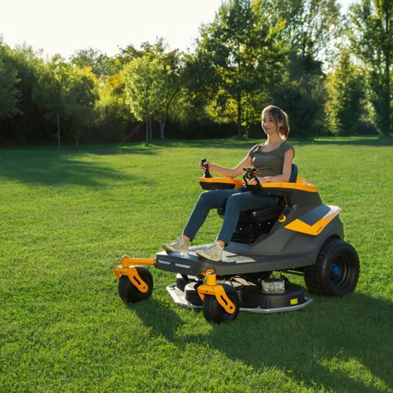 Het 125 cm zware maaidek kan gazons tot 13.000 m² aan met slechts één lading.