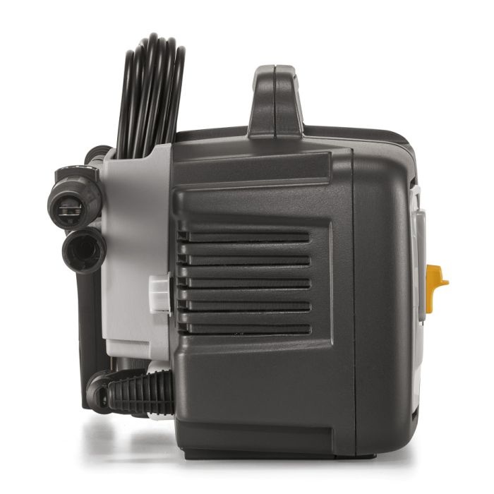 Dankzij de handgreep aan de bovenzijde kun je de hogedrukreiniger gemakkelijk optillen en verplaatsen.