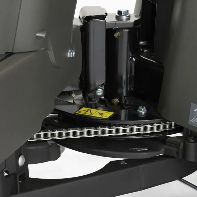 50:50 knikbesturing betekent voor je een moeiteloze en zorgeloze besturing. Met behulp van een hydro-piston volgt de achterkant van de machine perfect de voorkant terwijl je over het gazon rijdt. Zo is er minder gevaar om iets te raken tijdens het sturen rond obstakels en in bochten.