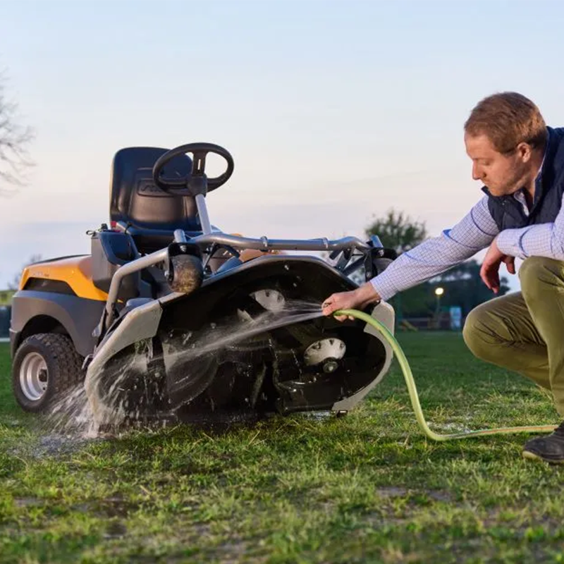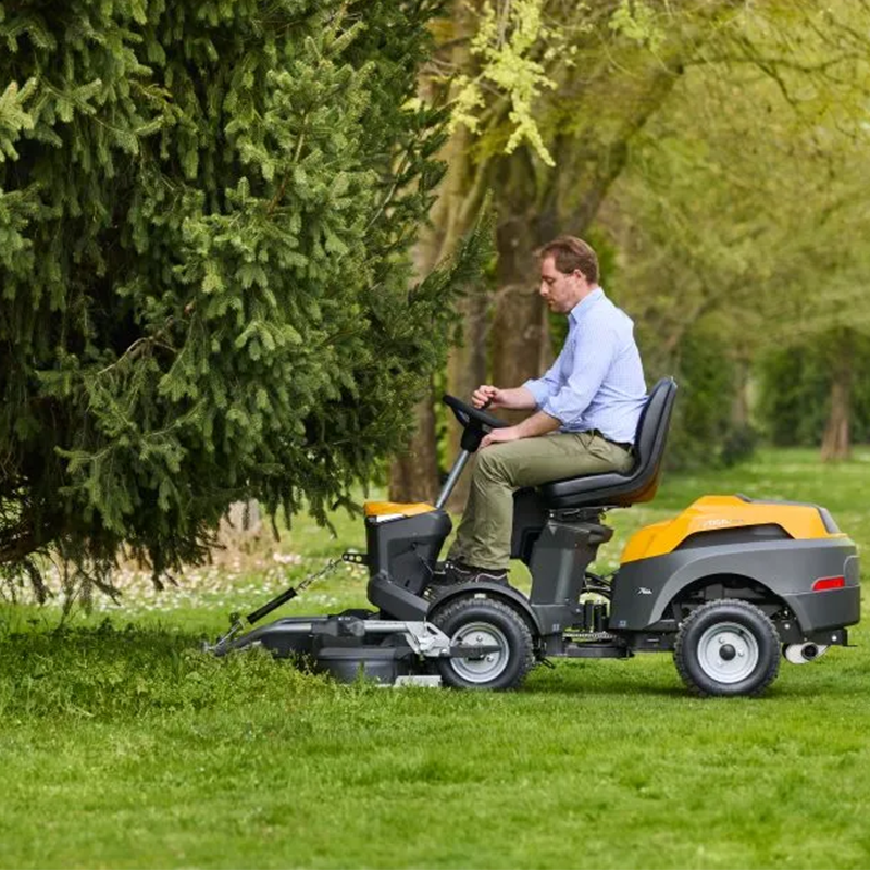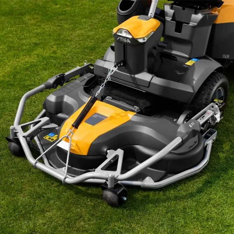 Het maaidek vooraan is verkrijgbaar in maaibreedtes van 95 cm tot 125 cm, voor snel maaien, een goed overzicht, toegang in bochten en precies maaien langs de kanten van het gazon. Met het snel Flip-mechanisme voor comfortabel onderhoud van het maaidek. Voor veilig werken bij weinig daglicht heeft de Park 700 W krachtige LED-koplampen met verschillende lichtstanden. Vermogen, comfort en veiligheid: deze Park biedt het allemaal.
