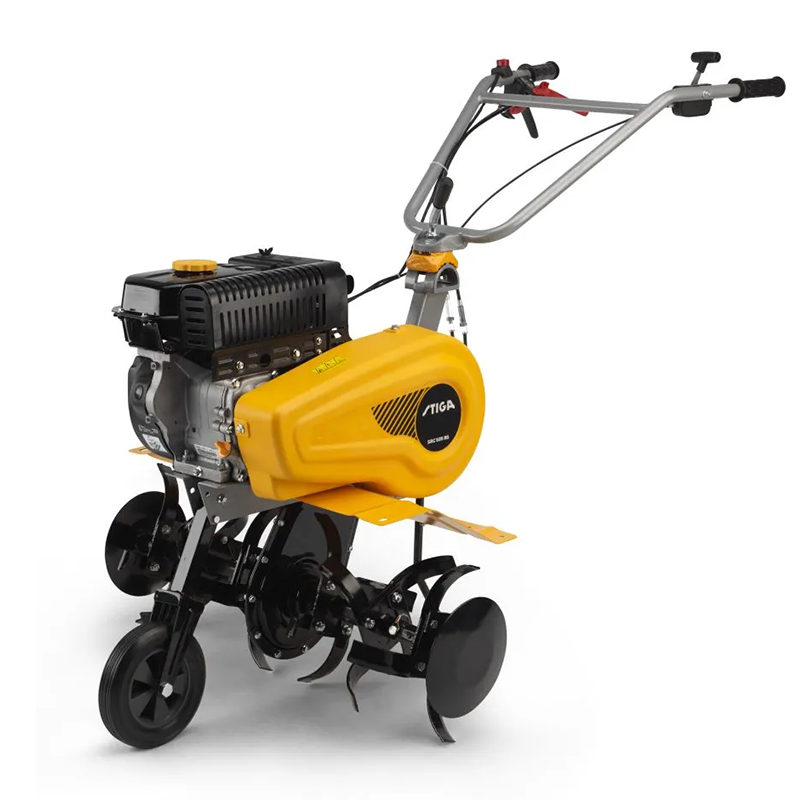 De STIGA SRC 585 RG is een krachtige, compacte en gebruiksvriendelijke tuinfrees met benzinemotor, ideaal voor moestuinen en moeilijk begaanbaar terrein. Hij is uitgerust met zes metalen rotoren, drie aan elke kant, met een diameter van 320 mm. Met een werkbreedte van 60 cm en een 4-takt benzinemotor van 182 cc, biedt deze tuinfrees uitstekende prestaties. De drie versnellingen (1 vooruit en 1 achteruit) zorgen voor optimale wendbaarheid en gebruikscomfort.