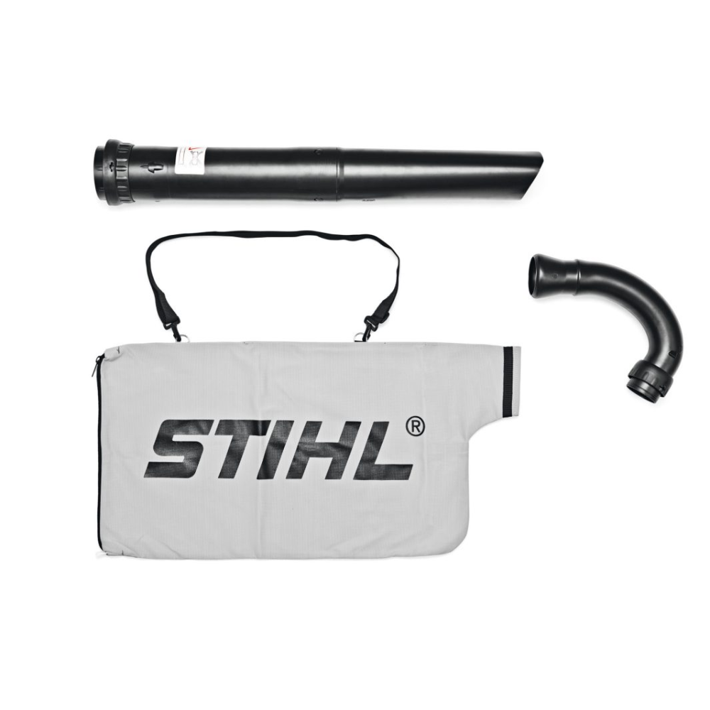 Voor het ombouwen van de STIHL BG 56 en BG 86 benzine bladblazers, tot een zuighakselaar. De opgezogen bladeren passeren de ventilator en worden daar versnipperd. In het ideale geval kan de inhoud van de opvangzak direct als mulch worden gebruikt.