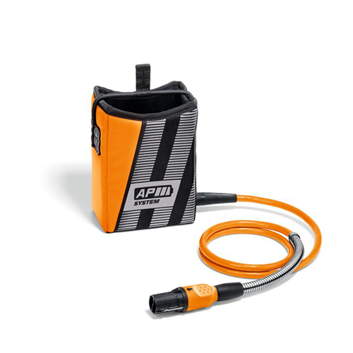 De STIHL accudraagtas met aansluitkabel maakt integraal deel uit van het STIHL modulaire gordelsysteem Advance X-Flex, waardoor het eenvoudig wordt om een batterij van het STIHL AP-systeem te dragen. Bij het werken in de bosbouw of tuin- en landschapsarchitectuur biedt de tas een handige manier om de batterij te beveiligen met behulp van een elastiekje, waardoor het risico van onbedoeld vallen wordt geminimaliseerd. De bovenranden van de tas zijn afgerond en naar beneden getrokken, waardoor je de accu moeiteloos met je vingers kunt vastpakken en met de Advance X-Flex-aansluitkabel uit de STIHL accudraagtas kunt halen. Om ervoor te zorgen dat je alleen de batterij hoeft te verwijderen voor opladen of vervangen, is de tas uitgerust met een aansluitkabel. Hiermee kun je direct een compatibel draadloos apparaat op de accu aansluiten en van stroom voorzien. De accudraagtas heeft tevens openingen aan de onderkant, waardoor vuil en water gemakkelijk kunnen ontsnappen.