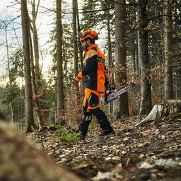Naast opvallende details in neongroen en reflecterende elementen biedt de broek zichtbaarheid dankzij het felle oranje. De effectieve beenkappen sluiten comfortabel aan de schoenen en beschermen de benen tegen invloeden zoals teken, zaagsel en sneeuw.