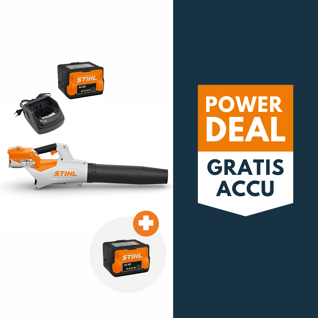 Bij aankoop van deze tijdelijke STIHL BGA 50 accu bladblazer actieset met 2x AK 20 accu en 1x AL 101 lader, ontvang je de 2de AK 20 gratis. De gratis accu bevindt zich reeds in de set. Je hoeft hier dus niets extra voor te doen.