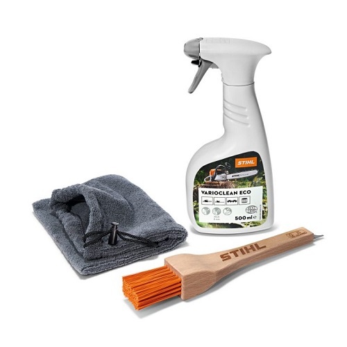 De STIHL Care & Clean Kit MS is een reinigings- en onderhoudsset voor STIHL kettingzagen. Voor het effectief en voorzichtig reinigen van oppervlakken, het kettingwieldeksel, cilinderribben, zaagbladen, het oliesmeerkanaal en de HD2-luchtfilter.