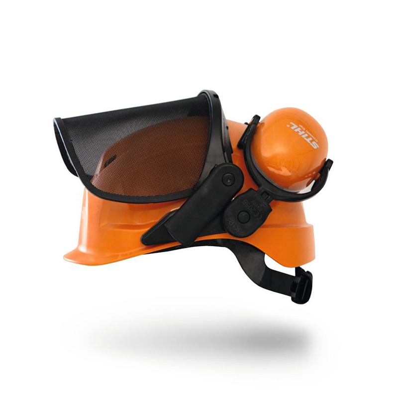 Helmset voor professionele en particuliere gebruikers. Hoog draagcomfort dankzij het lagere gewicht. Zeer goede gehoorbescherming (SNR 28). Groot vizier voor een goed zicht. Hoofdband met draaisluiting die comfortabel aangepast kan worden, ook met de helm op. Ventilatieopeningen in het bovenste deel van de helm. Voldoet aan EN 352, EN 397, EN 1731. Het meest gebruikte flexibele nylonrooster, daardoor vermindert het gevaar op breuken en verhoogt het de levensduur. Meestal lichtdoorlatend. Opgelet: Gezichtsbescherming vervangt de oogbescherming niet.